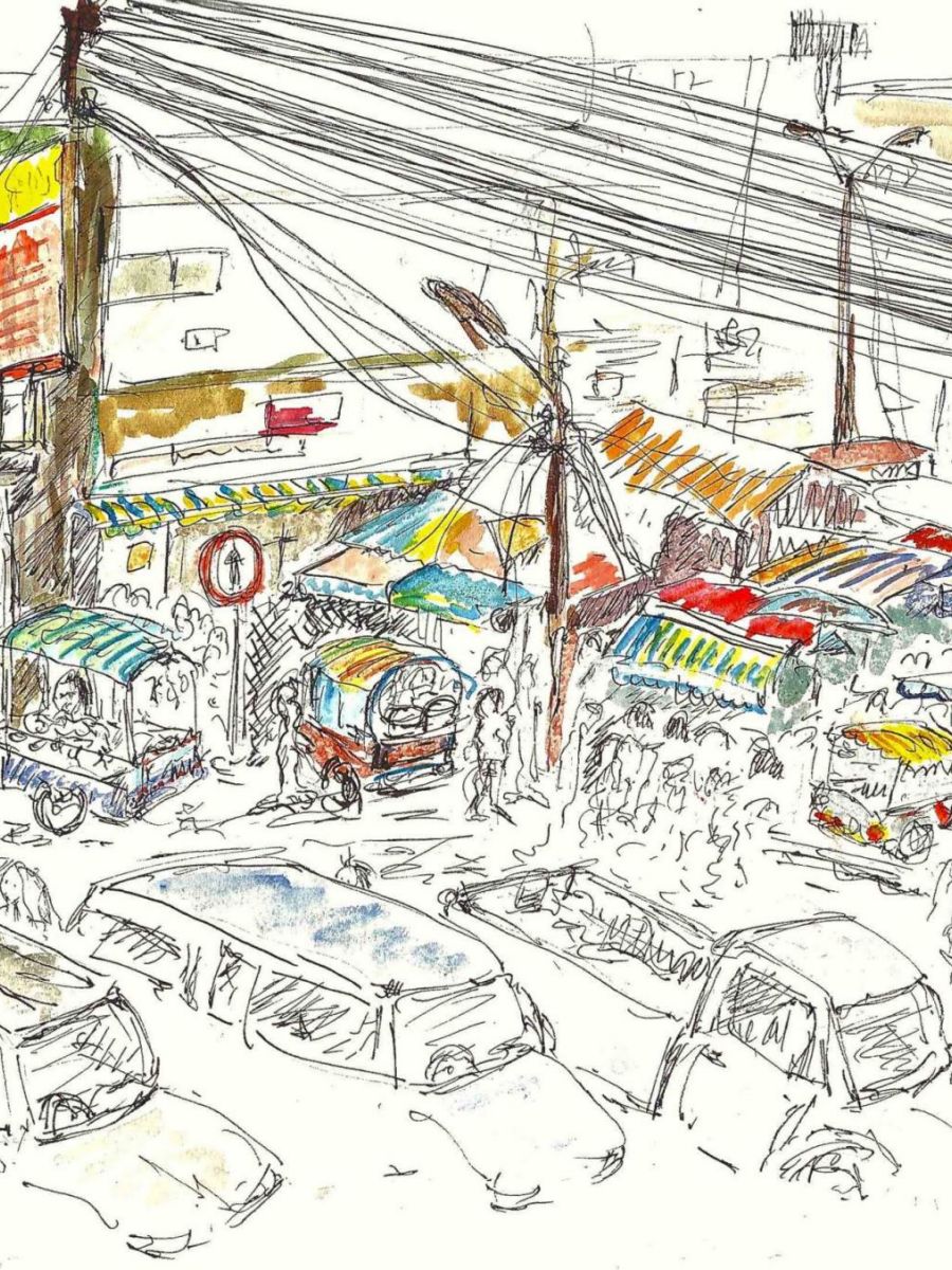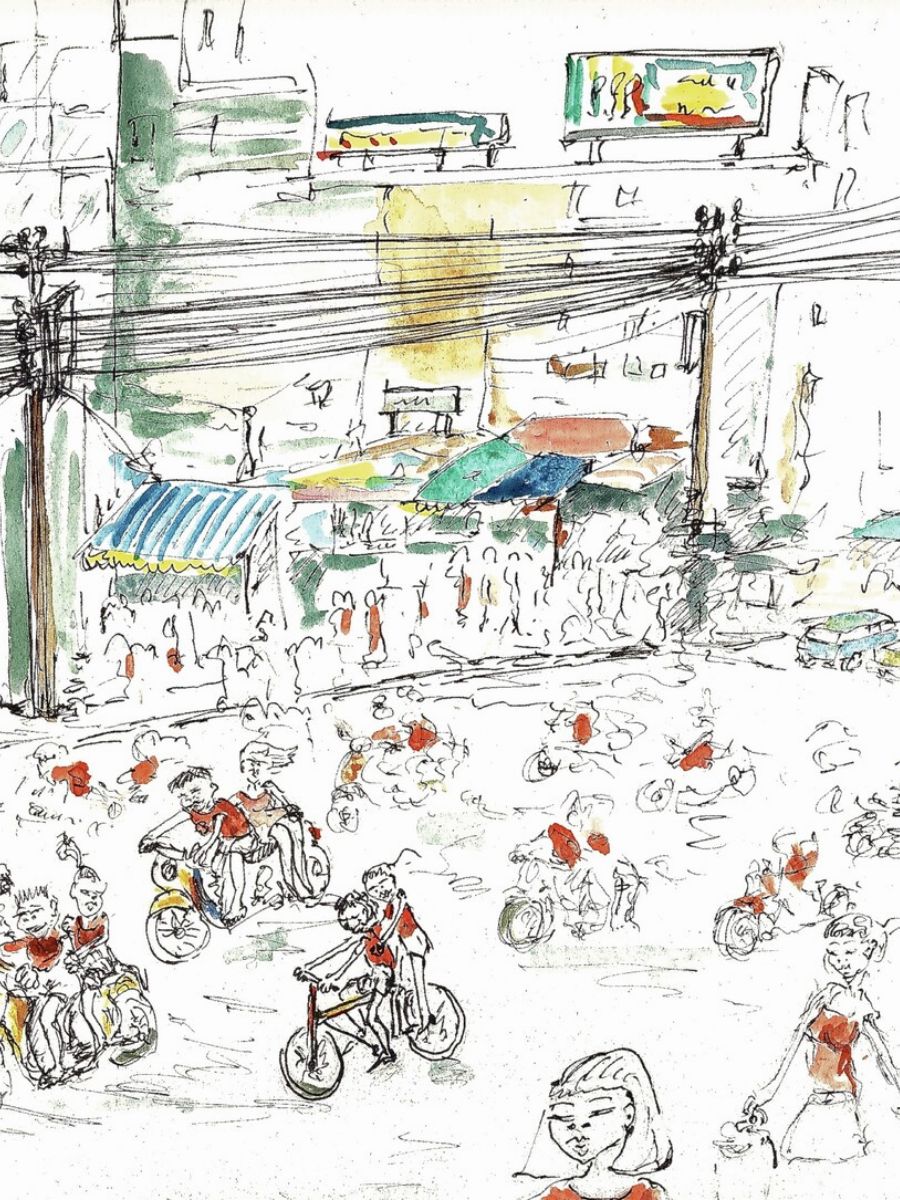 À chaque voyage, mon carnet ne reste jamais longtemps fermé. Entre deux trains, au coin d'un café ou face à un paysage inattendu, les personnages surgissent et racontent à leur façon ce que les photos ne montrent pas. Ces dessins de voyage mêlent humour, scènes du quotidien et rencontres improbables. En savoir plus ..